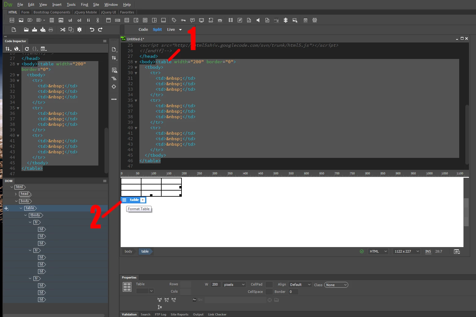 I have an old site built in tables. How do I get them to show in "live mode". Dreamweaver CC 2017