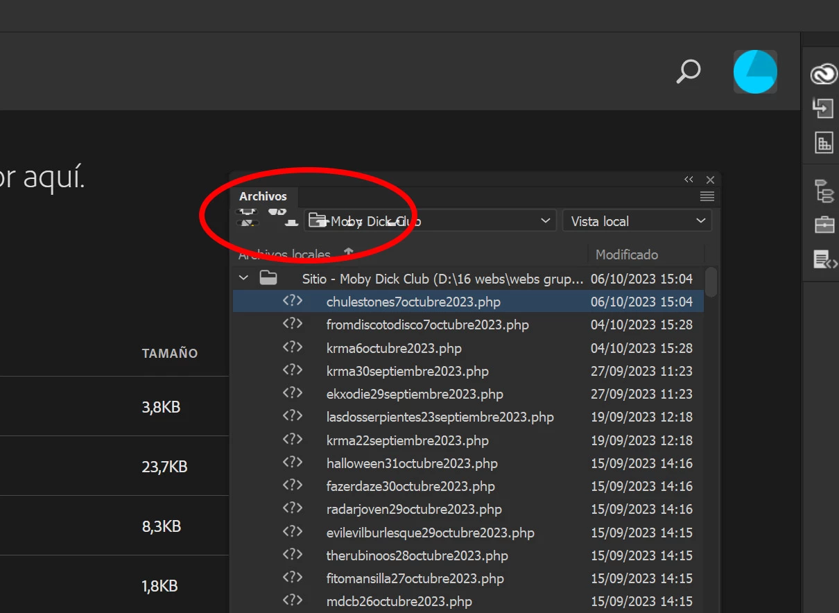 Malfunction on my Files panel (spanish version)