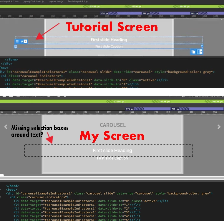 Missing blue frames around text when selected.