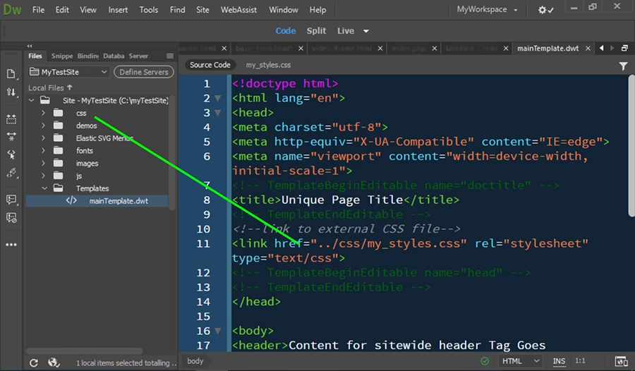 I have recuperated all the files from an entire site created with Dreamweaver CS6 in the latest version of Dreamweaver CC. The Main Template.dwt is in the directory Templates. Here is the code referring to the menu.html (in _System/ContentHolders/) which never appear in index.html nor in any other files based on the same template :