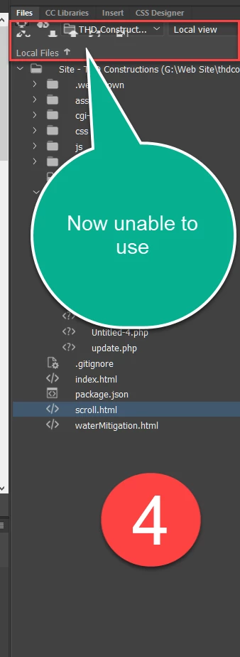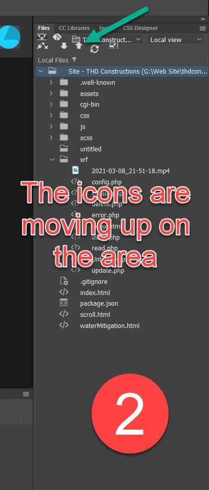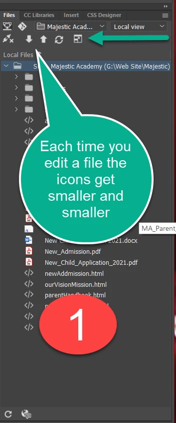 When i start with a brand new open my Icons are there to upload files and down load files. As I edit files the icons keep inching up the page and after a 5th edit the icon to post to the website is no longer there...