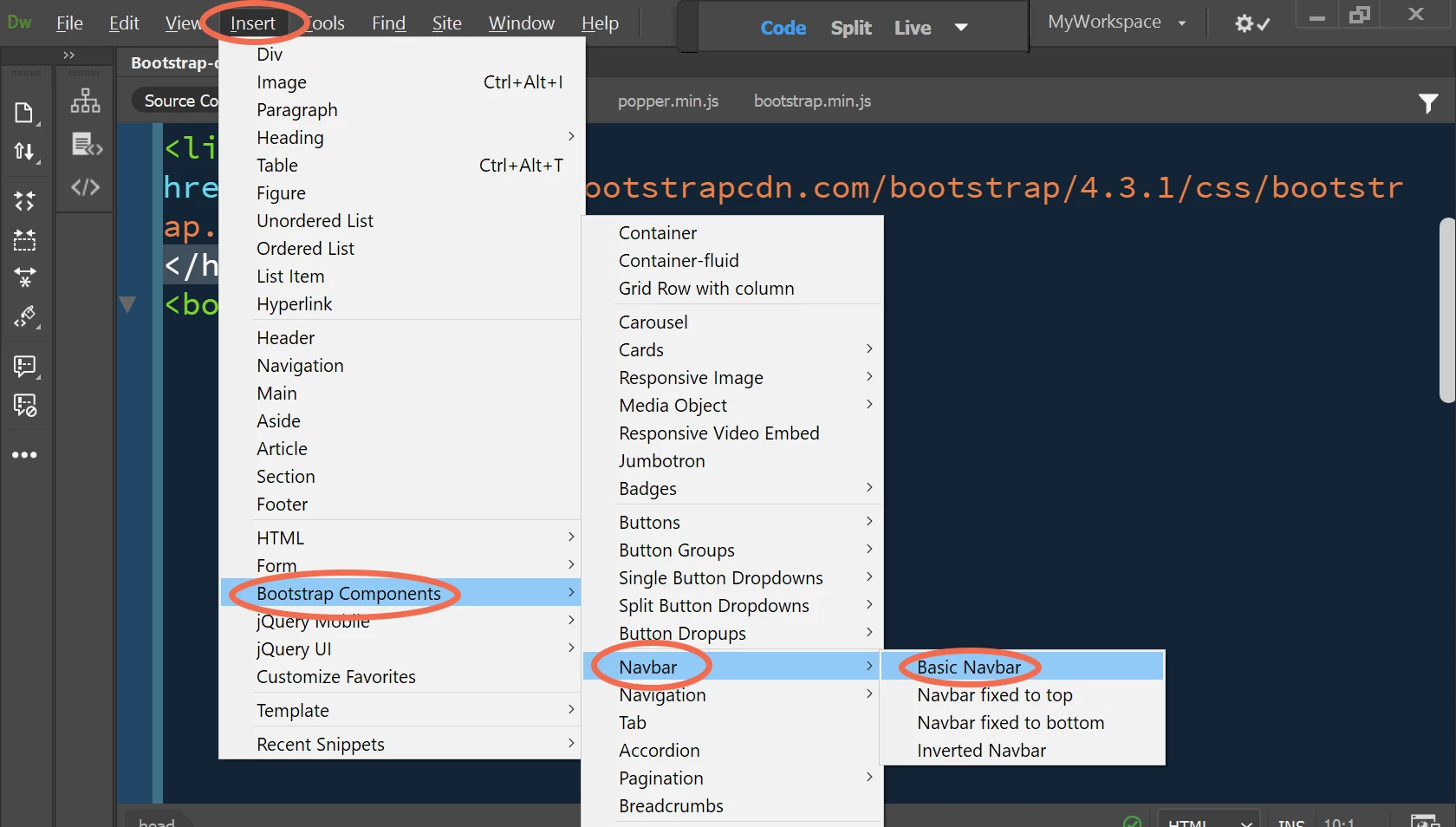 I use Bootstrap for responsive web design. And Bootstrap contains many built-in components (what Muse users call widgets) for creating navbars and other interactive elements.
