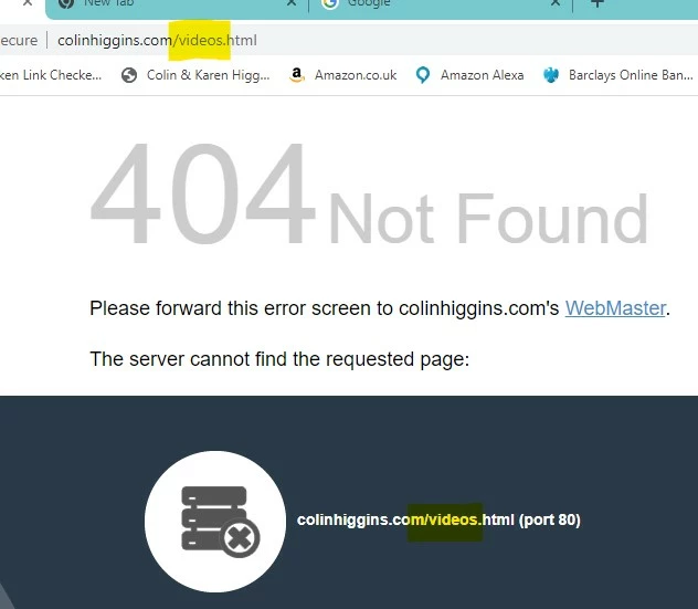 A bit of a strange problem with a link from the "Links" tab when navigating from that tab to the "Video" tab which manifests itself with a 404 error. The error arises because it tries to navigate to a page called "Videos" not "Video" but the coding on the two pages, Links/Video appears to be ok, and it doesn't happen when navigating from any of the other tabs, so I'm stumped and any help would be most welcome. Just to add the same error occurs when using my Android phone. TIA