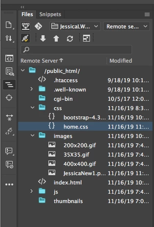 I am really stressing trying to figure this one out so any help is greatly appreciated. The site I am working on is www.jessicalwhor.com and it is in its infancy stages, so please don't expect a fully-realized site. However, I'm having trouble moving past this initial issue. For some time, I was able to put changes on the domain rather easily, however now I am not able to. I recently updated the background image, but the changes are only displaying on my device (the local device) and not on my cell browser or on my partners laptop on any browser. I have tried all browsers, and have cleared the cache seemingly hundreds of times now. I even went so far as to download FireFox on a device that has never had FireFox installed. The new file that is to be displayed has a filename of "JessicaNew1.png" and the one that consistently displays no matter how frequently I remove it from the /public_html/ file is named "JessicaBackground.png." I've double checked that Dreamweaver is putting the files on the correct server. The domain is hosted on Bluehost. I am using Dreamweaver 19.2.1.11281. I am using bootsrap. On my screen, when the remote server is selected, the only image that displays in the "images" folder is the new one - I have no idea why the old image would still be displaying on all devices except for my own. I suspect some of my code may point to a local file, but I have combed through it and can find nothing. I'm reall desperate here, so thank you for any additional info you can provide me with. I am attaching some screenshot of what I believe to be relevant information. Thanks again.