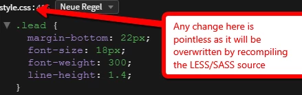 So any change to the css will be overwritten faster than you can say "save the less/sass file".
