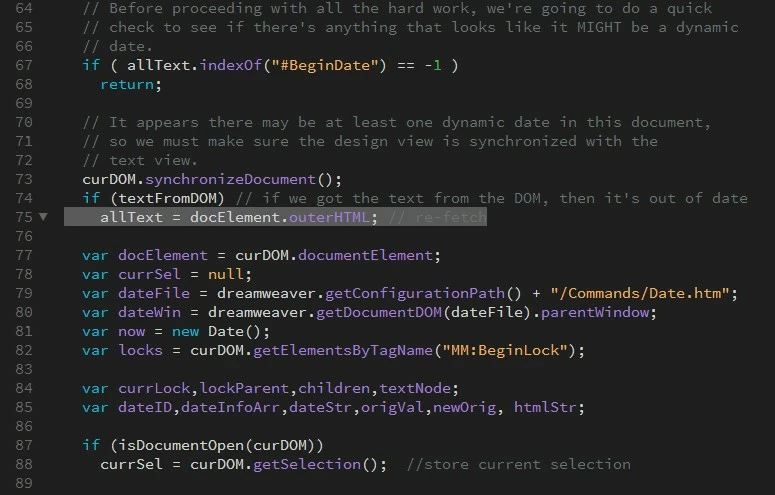 At line 75 of file "C:\Program Files\Adobe\Adobe Freamweaver 2020\Configuration\Commands\Date_beforeSave.htm":