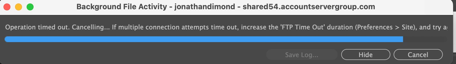I was able to connect via ftpweb.net without any timeout issues, so my credentials remain correct.
