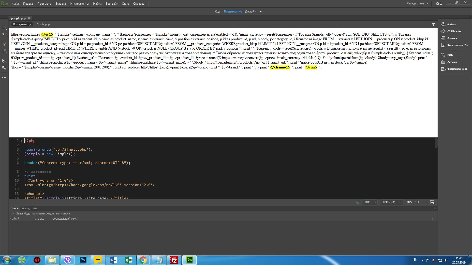 Вот я открыл документ PHP , думаете он мне показывает код? Думаете если убрать разделение экрана, то? То тоже не показывается код!