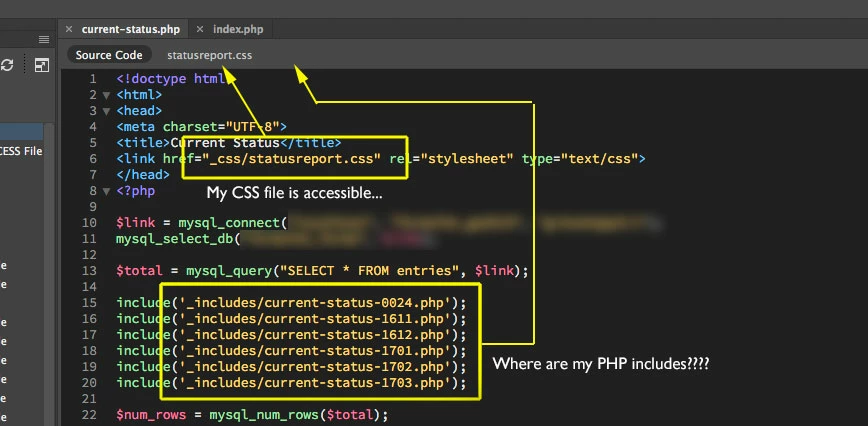 Hello this morning I fired up dreamweaver and noticed a negative development. I am accustomed to opening a file and seeing easy-access links to all the support CSS, Javascript and PHP includes available to the right of the source code in the toolbar. Now the php includes are gone. Does anyone know what happened to them and how to get them back?