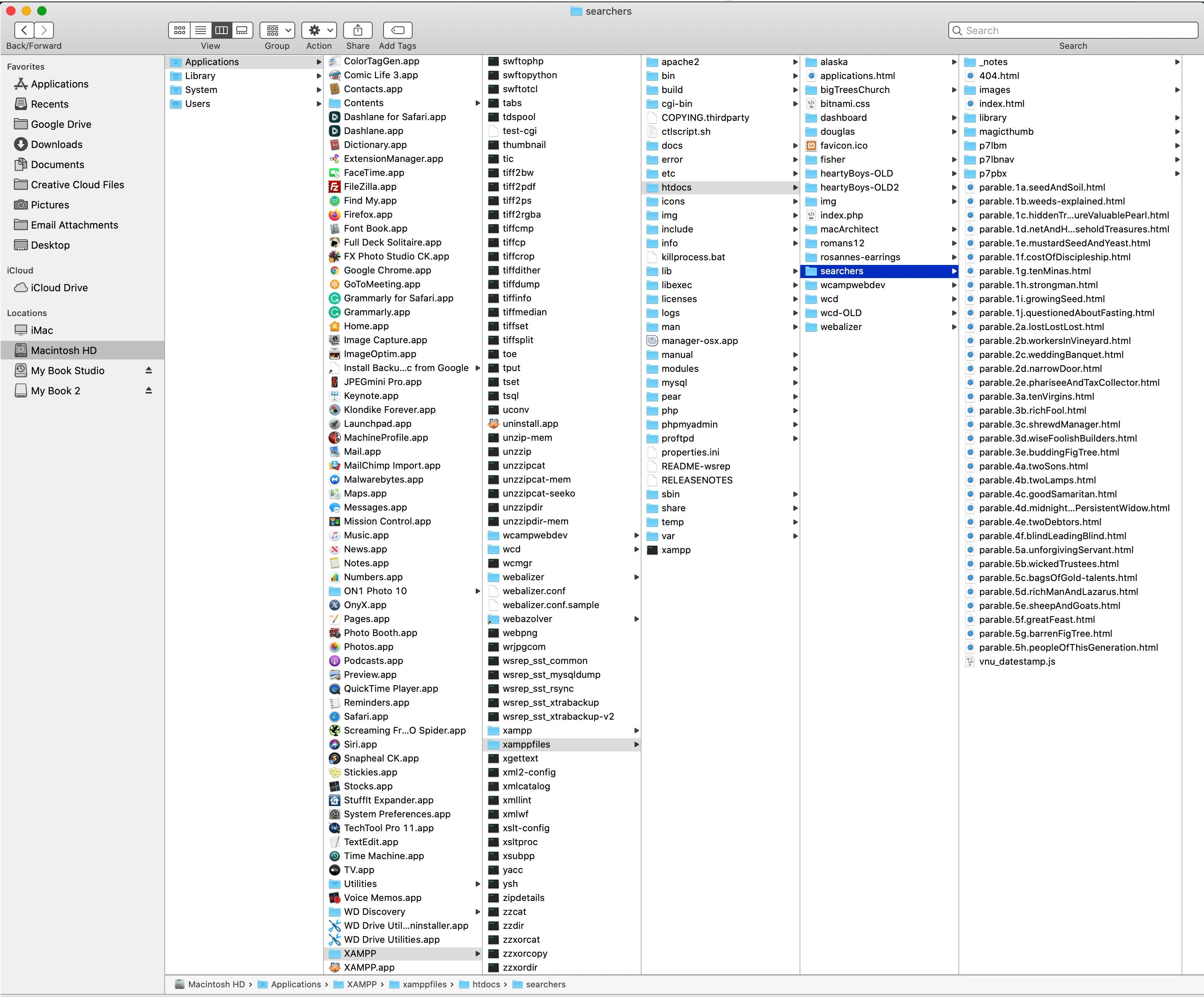 Yet, although I cannot open the problematic page's local file in the "searchers" directory, the online file opens as it should. Here's the "searchers" directory's successful hyperlink.