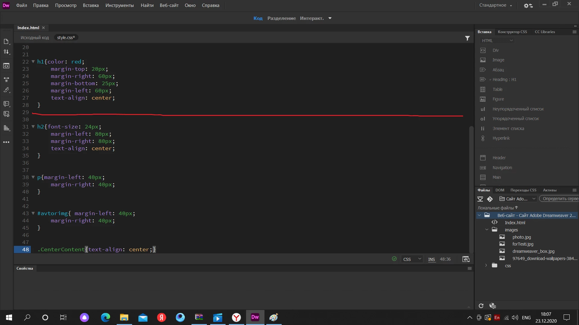 Здравствуйте помогите пожалуйста! я хочу поставить картинку по середине но ана не ставиться, что делать? и еще я не как не могу вызвать панель создать новое правило CSS! по ютубу к сожалению очень мало видео по этой программе! и там он все свои действие во основном делают через панель создать новое правило CSS! короче помогите пожалуйста как создать новое правило CSS? и как поставить картинку по середине? не знаю правильно ли получилось донести мысль ? но мне ОЧЕНЬ нужна помощь!!!!!!!!!!