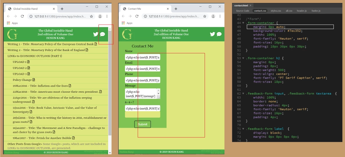 Clicking the icon in <header> opens the file (Contact Me).