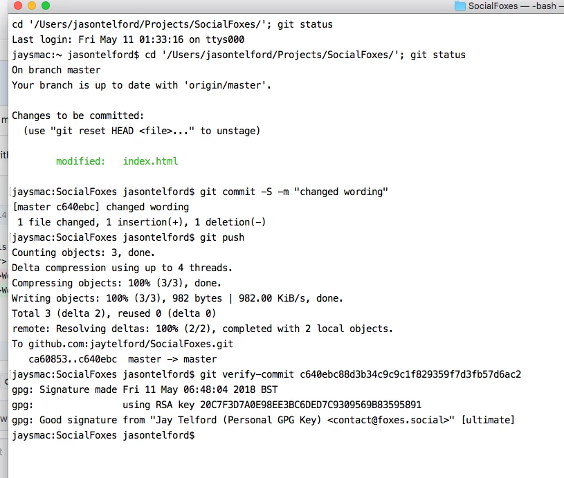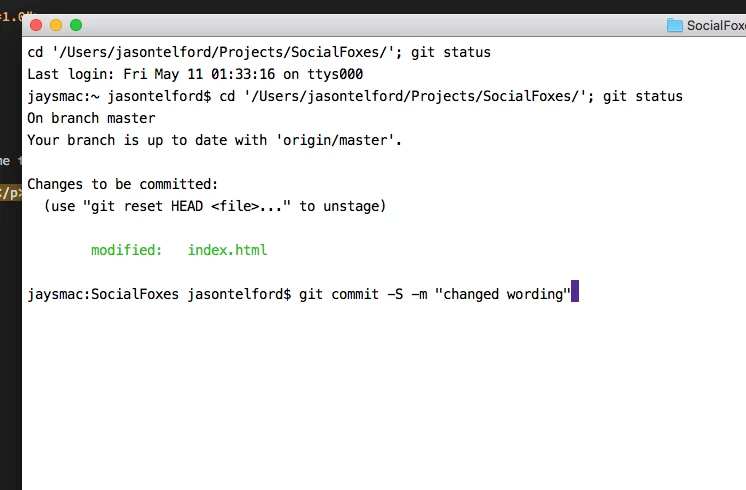 However, if I open the Terminal (I can do this either by manually opening Terminal and navigating to the git repo or by clicking the Terminal button from the git panel in Dreamweaver) and manually run the command to sign my commit
