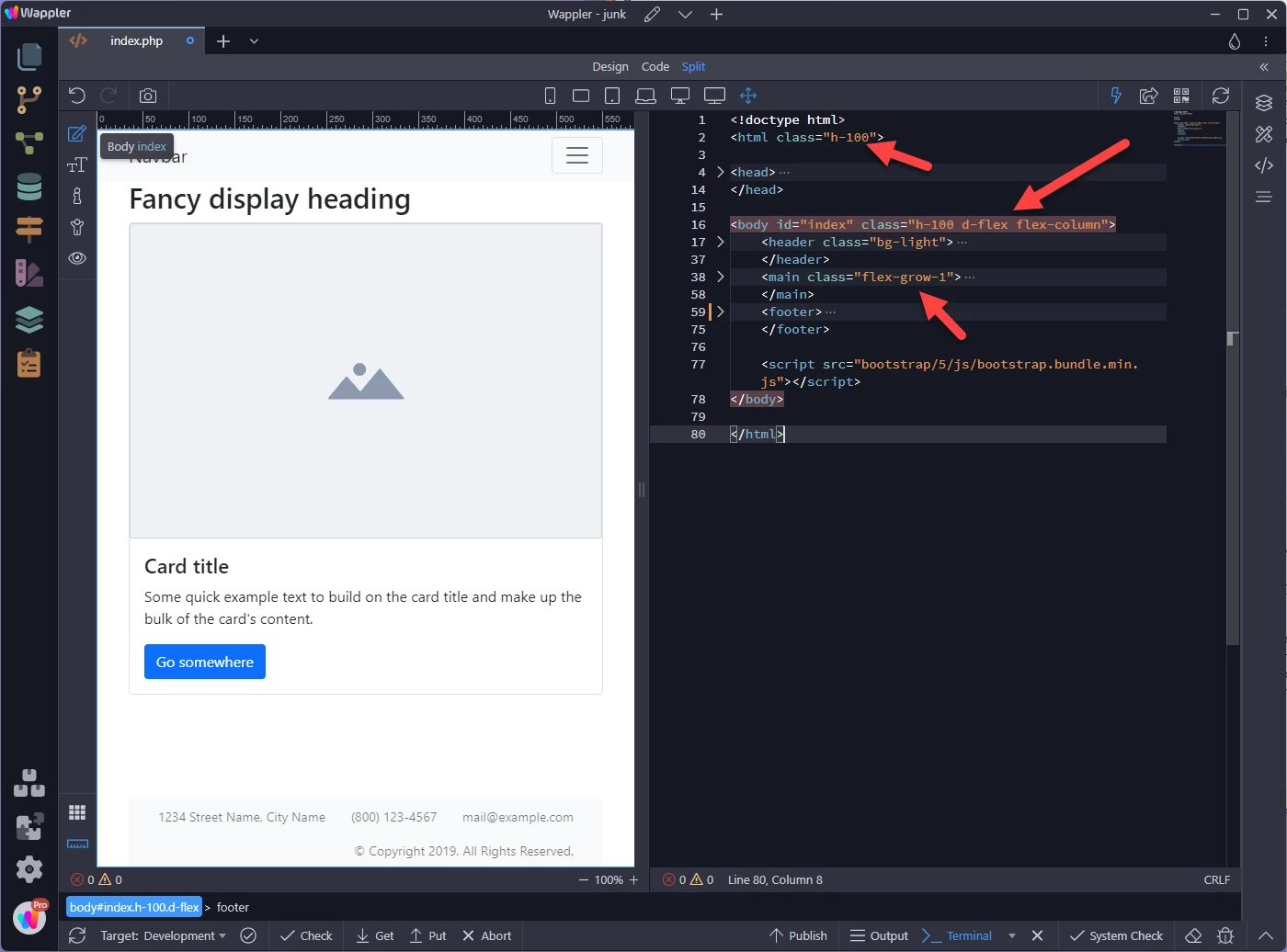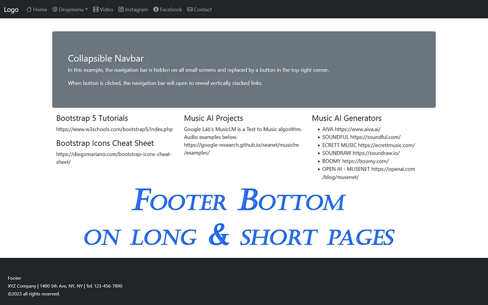 I just updated my first website, which was a combo of bootstrap and my own coding. I updated the footer in the template to include favicons and a background color. I used CSS and flexbox to position my text with the favicons. Everything looked fine until I realized that the footer was only "sticky" when there was alot of content on the page. In the emptier pages, the footer floats to the top.