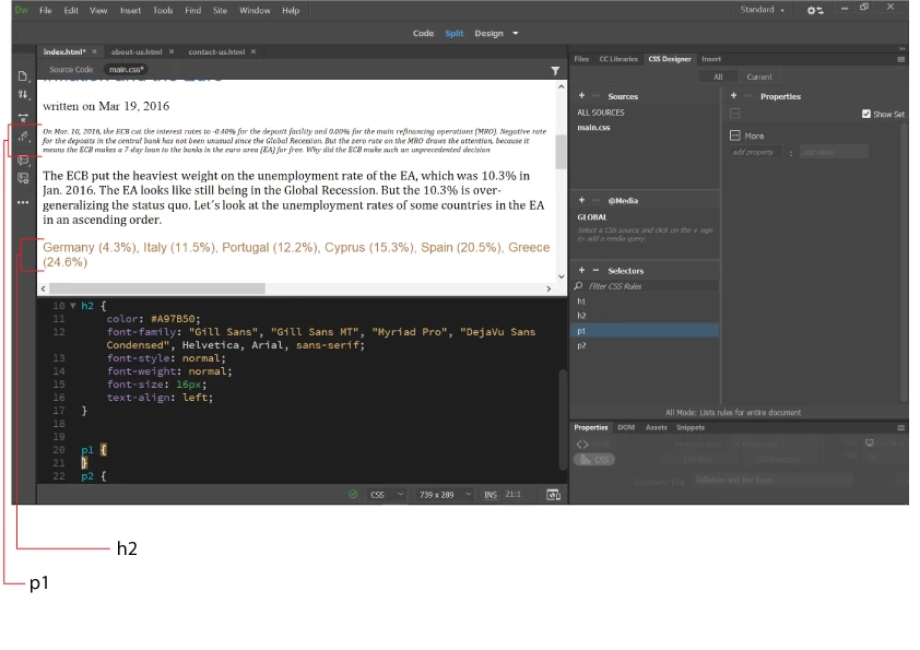 There is no such thing as 'p1' or 'p2'. See HTML Basic