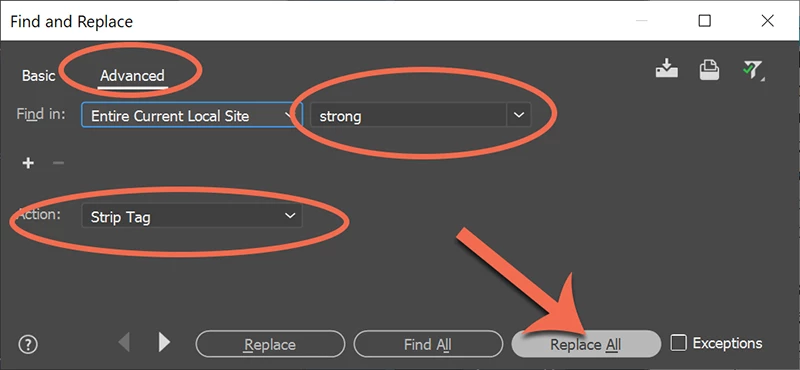 But I want to remove the <strong> tag from all my pages sitewide in one hit, rather than going through each page.