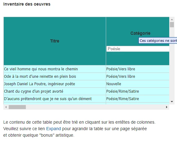You click on « Expand » and get a (nearly) full screen view of the table. I can only reproduce a part of the expanded table too large vertically as horizontally:
