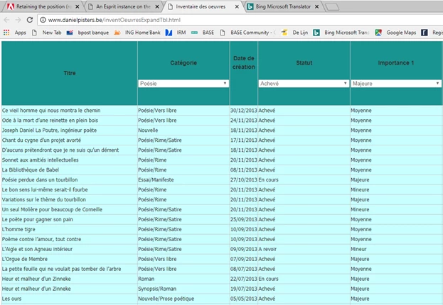 First, I would like to answer to Nancy. Let us assume that you have selected <Creative> on the menu of the home page of http://www.danielpisters.be/. Go to the second part of the window, bellow the first table “Les pouhons spontanés de l'Esprit au jour le jour”:
