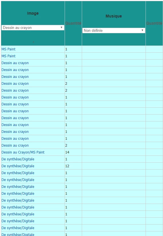You follow the link <Dessin au crayon> on the twelfth row, for example, and get a view of the drawing on a new page: