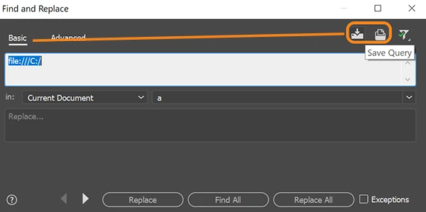 Save/Load Queries in Find & Replace CC 2019