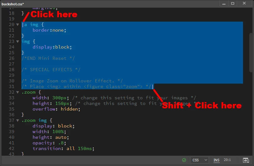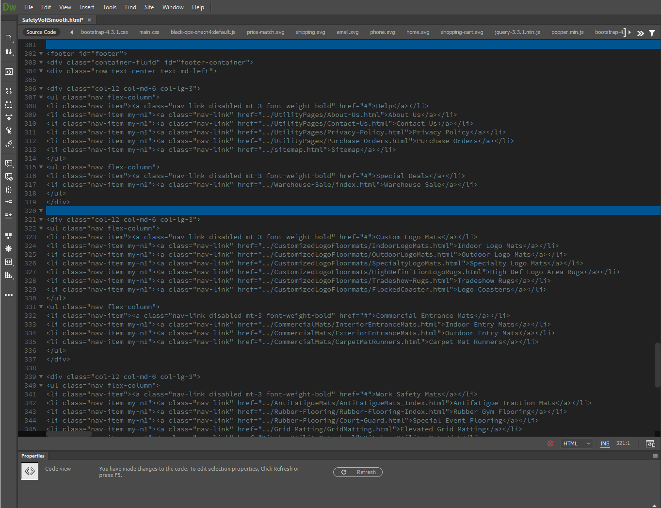 Selecting Lines of code in Dreamweaver 2020