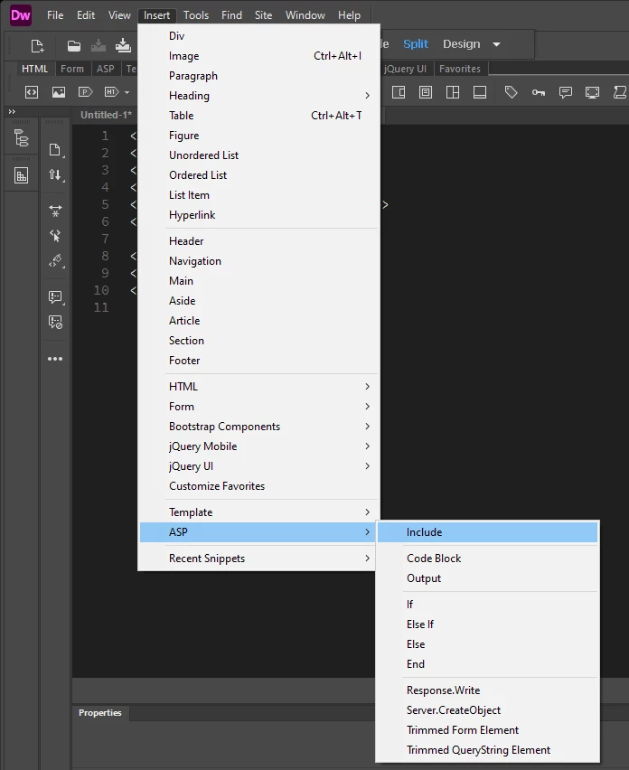 Server Side Include does not appear to be an choice in Dreamweaver