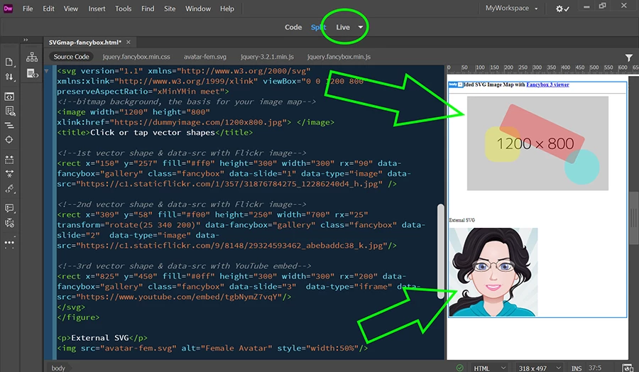 Dreamweaver on macOS doesn't recognize these as images, showing a broken image icon.