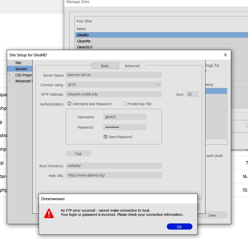 SFTP Broken in Dreamweaver 2017
