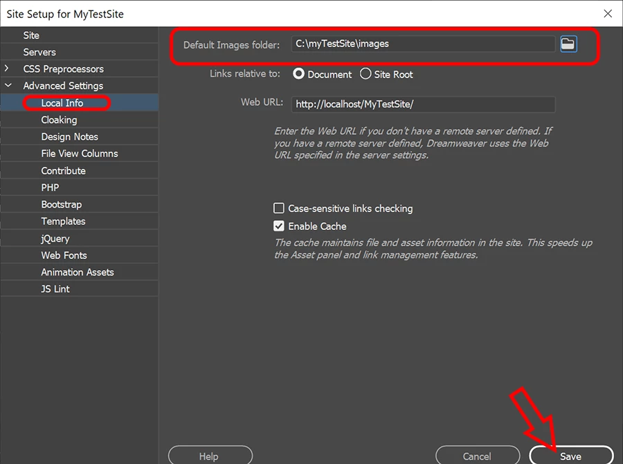 One more screenshot -- for establishing your site's default images folder.