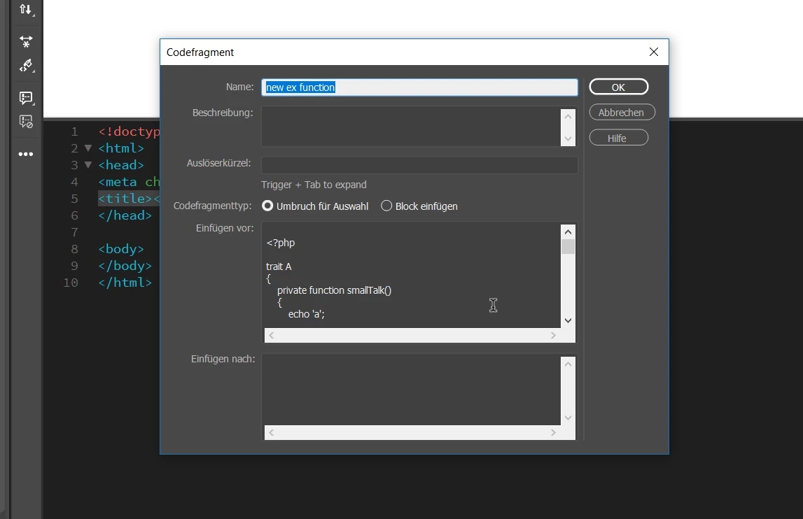 If you need the extra space, copy and paste the Snippet into a blank html file and make your modifications there. Then copy and paste it back into Snippets. It's an extra step, sure, but it will give you all the room you want to make changes.