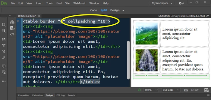 Space between an image and text within the same table