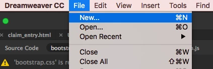 2. When Dreamweaver opens the new project. My CSS file is from a previous project.