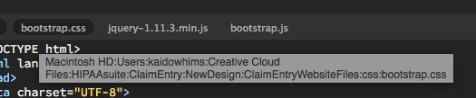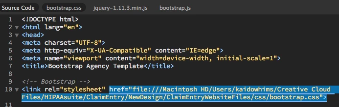 NOTE: Where the html is being save is fine, but the CSS "bootstrap.css" is for some reason being linked to my older project. Which is clearly outside of my "test" folder that I created on my desktop.