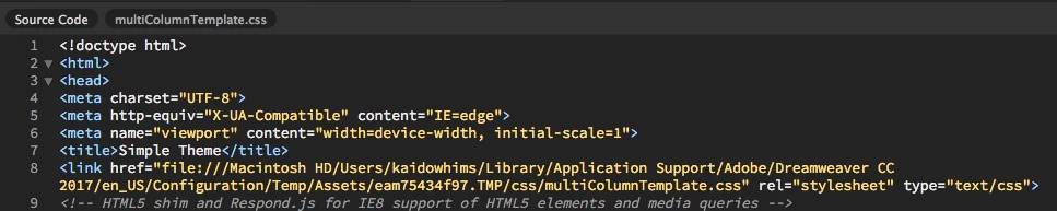 Here's an example of what I mean. If I create a starter template site from Dreamweaver.