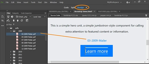 Recently switched from Dreamweaver cs6 where I could drag and drop any local file to any page. Is this feature no longer available in DW CC 19.2? I was able to drag and drop things defined as assets (image, media, etc.) in CC 19.2, but it doesn't appear that pdf's are considered an asset. My typing sucks - so drag and drop is a great feature for me, would rather not type the URL to each PDF document if possible.