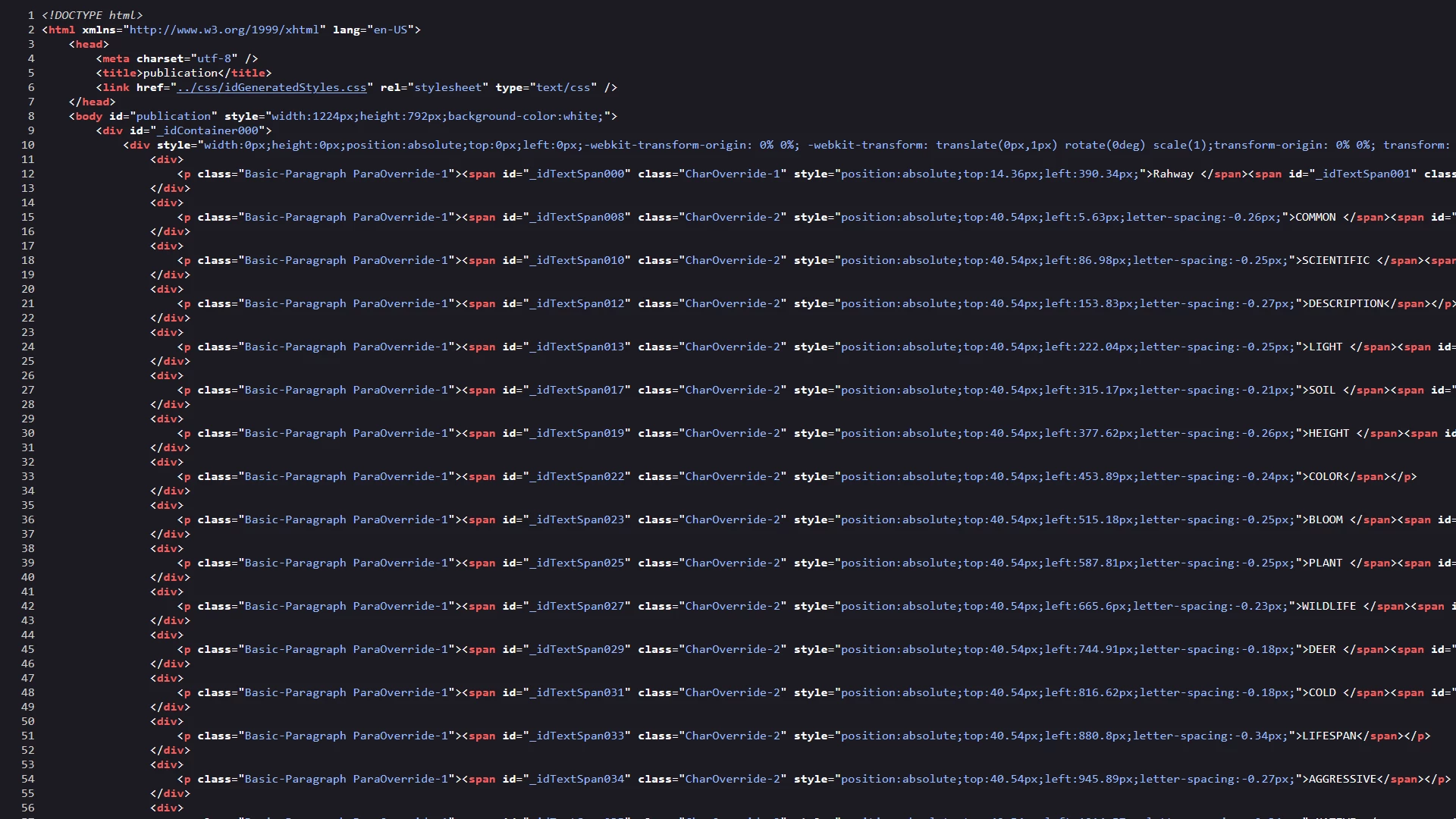 table saved from indesign as an html doc . . .