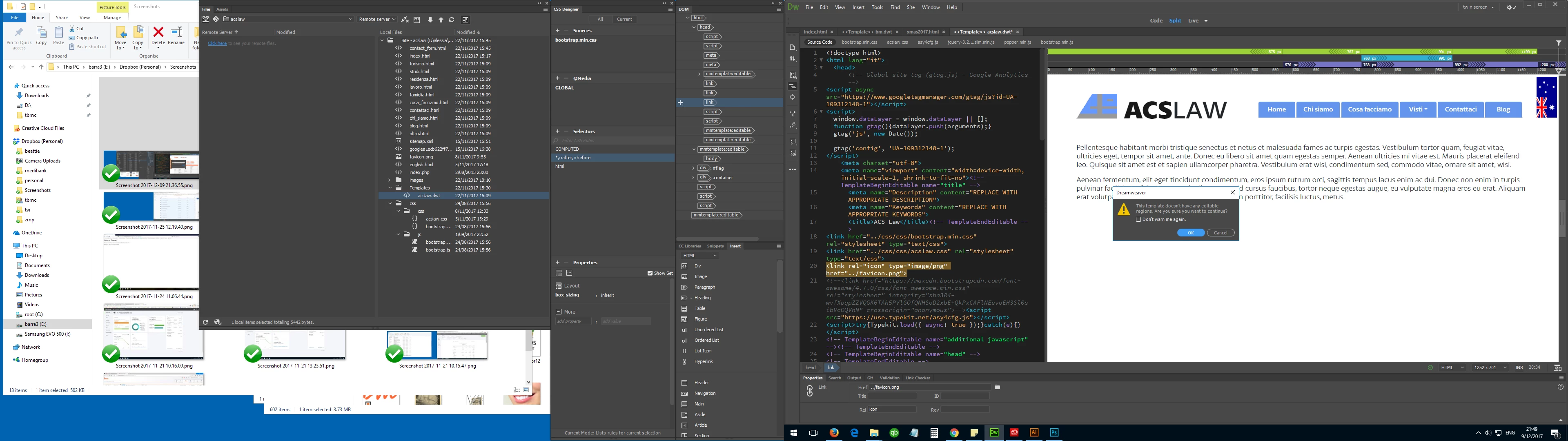 The site templates for 2 different websites both report the same error "This template doesn't have any editable regions. Are you sure you want to continue?"