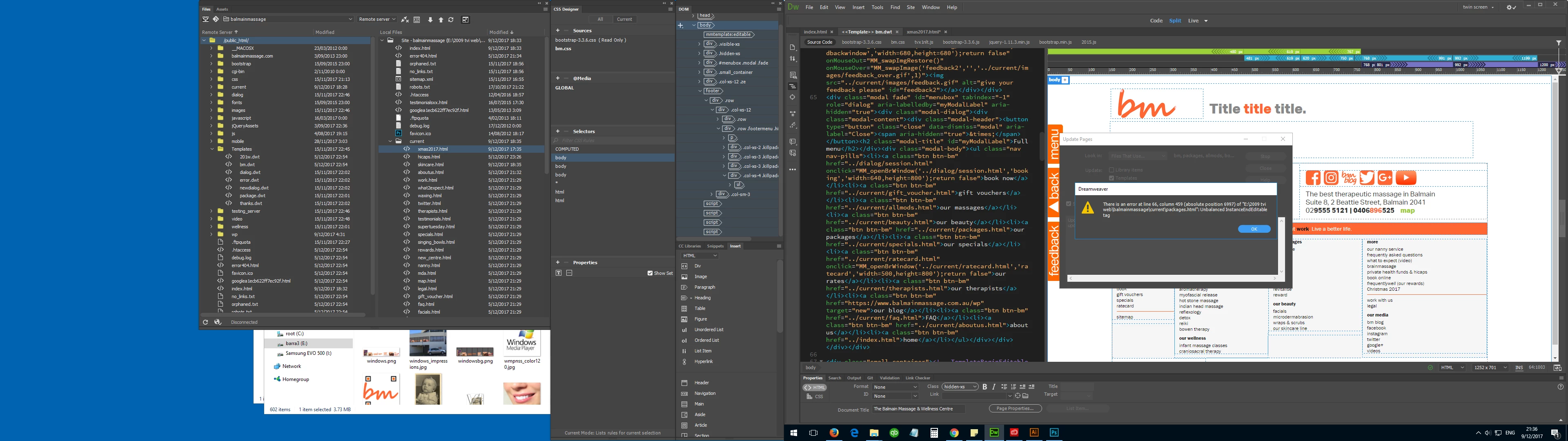 When I click YES, the template for the site http://acslaw.com.au updates all its children pages without a problem, in spite of the warning; the other, http://balmainmassage.com.au, reports one more error: "There is an error at line### column ### (absolute poisition #####) of <path of first file to be updated>: Unbalanced InstanceEndEditable tag" and no files get updated.