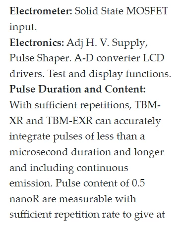 <li><b>Electrometer:</b> Solid State MOSFET input. </li>