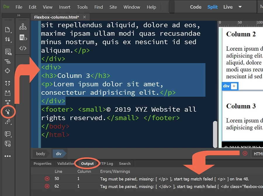 The select parent tag function in dreamweaver is not working for me even if I use shortcut code. I've spent quite a bit of time going through all of the preferences and reading articles on changing colors for coding etc. So 3 hours later, here I am begging for help. Without the ability to see where my Divs open and close, I can't troubleshoot my page. I think this is a tech support issue, but is there no way to contact Adobe tech support? I sure couldn't find one. Their links are circular and just bring you to the same 3 pages over and over.
