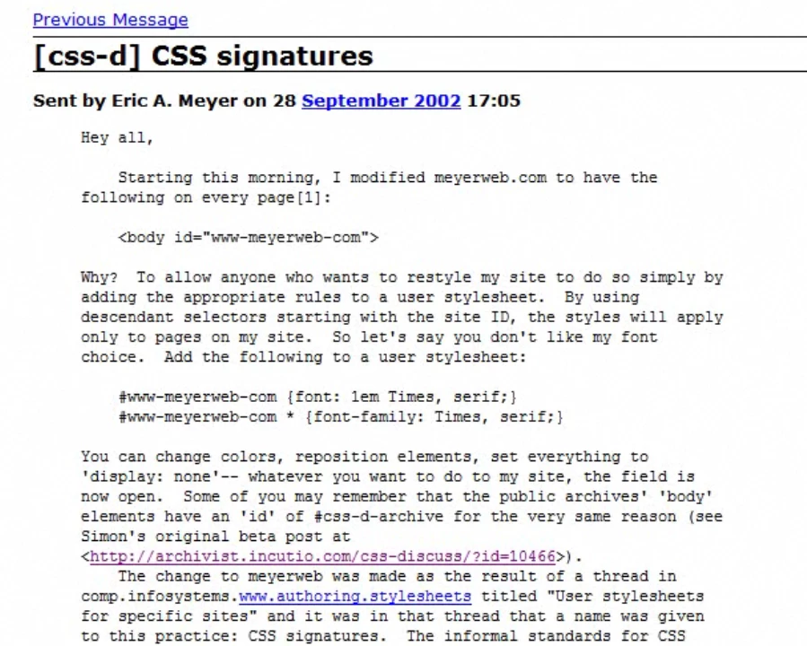 after all, it's thanks to people like her, but also Andy Clarke, Mark Boulton, Jeffrey Zeldman, Eric Meyer, Christopher Schmitt, Dave Shea, Andy Budd... that the web has been able to get out of the rut it's been in since HTML4.