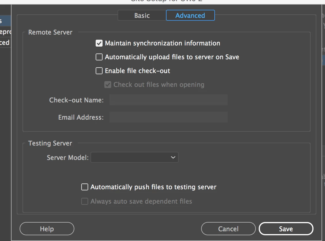 Here is a screenshot of my Advanced tab in the dialog box"