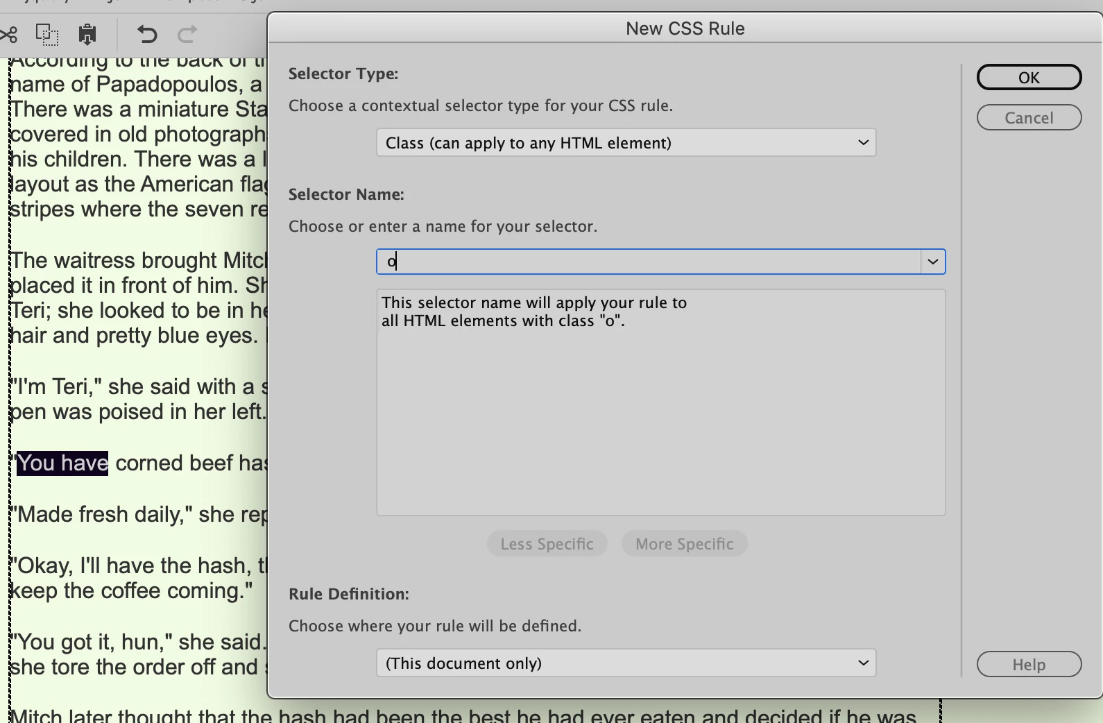 In editing in Design View, I'm getting some unexpected behavior. If you look at the screenshot, you can see that I have highlighted two words so I can edit them by overwriting them (I wanted to replace You have with How's the. But as soon as I begin to type the new word, that New CSS Rule window opens. Any idea why that's happening? I should add that this only happens when I highlight words to replace them. I can add words without the window opening.