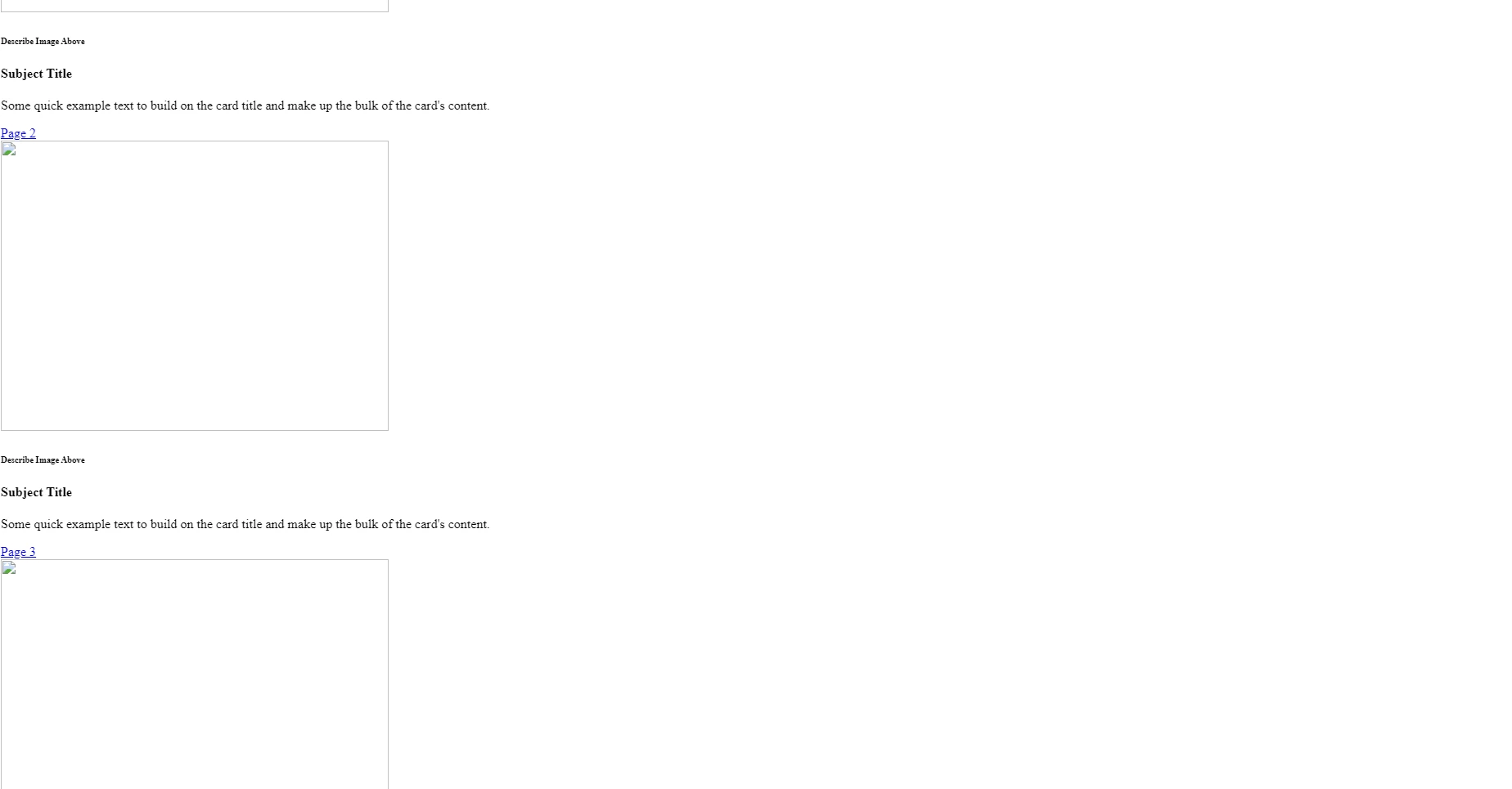 <div class="col-xl-4"><img src="file:///g|/Placeholder Image.jpg" width="474" height="355" alt=""/><h6>Describe Image Above</h6><h4>Subject Title</h4>
