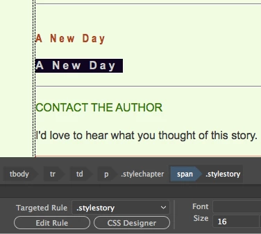 When I change the font for the selected text, I notice that it just adds the new font to the old font (the table body tbody tr td p .stylechapter span style story) Is that normal?