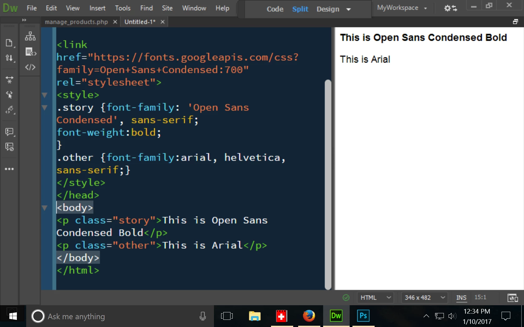 I'm having issues with custom fonts. If you look at the screenshots you will see that the two lines of text should be different. The top one is my .stylechapter font which is Open Sans Condensed/bold/with 5px spacing and the bottom one is .stylestory which uses regular Arial/normal/no letter spacing.
