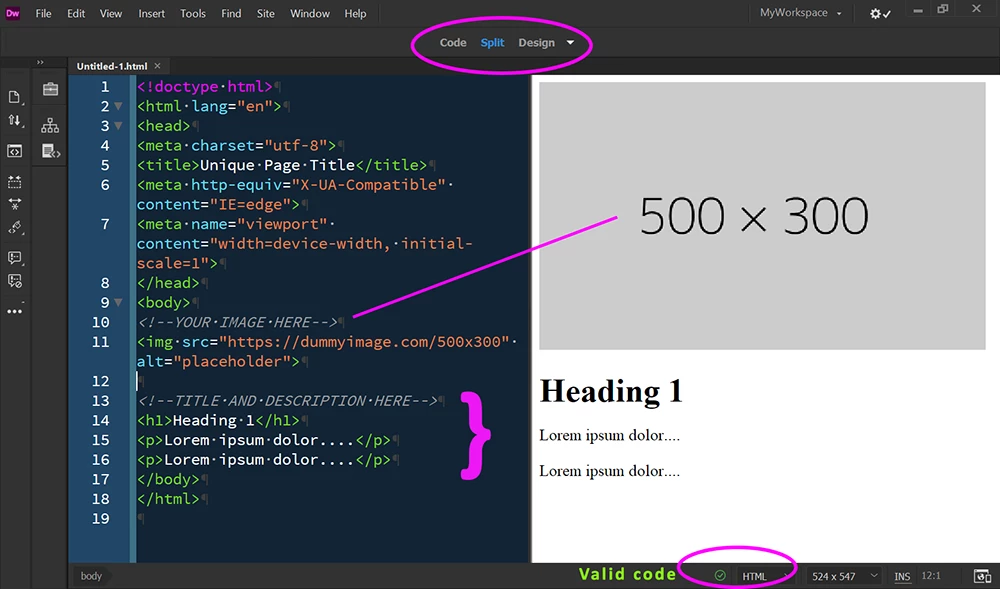 I have my cursor above the title and when I paste the code that will put the image it just keeps being pasted in a completely different area each time... Why??? How do I solve this?