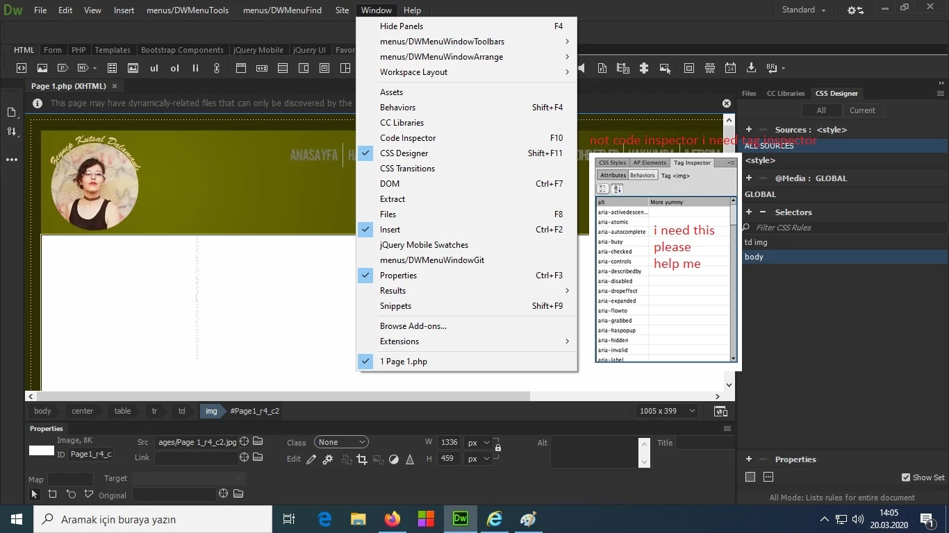 where is my tag inspector i lost it dw cc 2020 i can not find