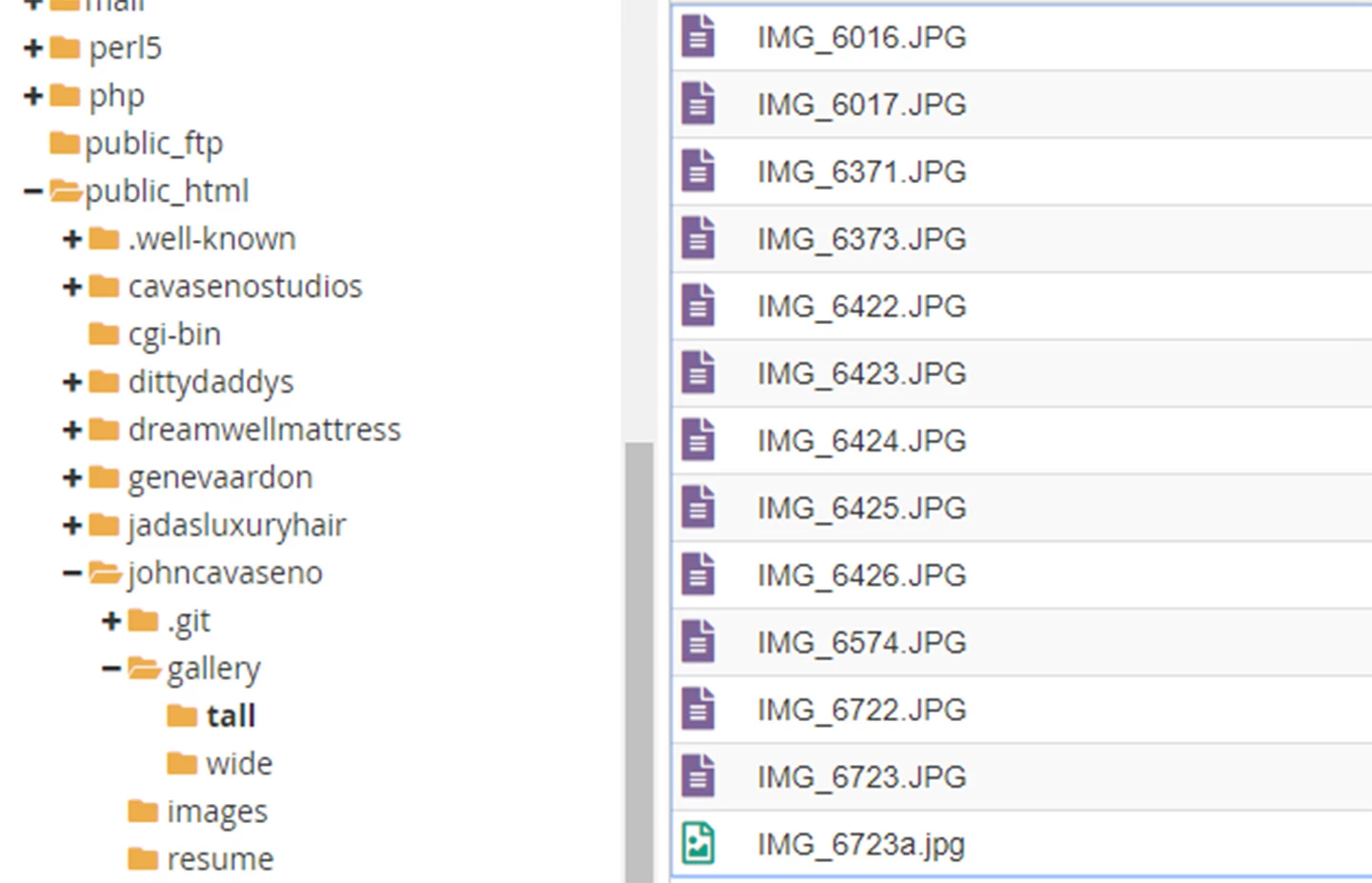 In the bluehost cpanel here is a screenshot of the file manager with the images within gallery/tall.