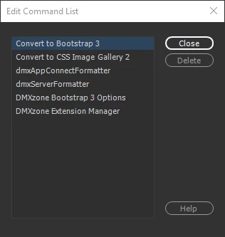 The Edit Command List dialog shows those items that are related to extensions that I have installed for Dreamweaver.